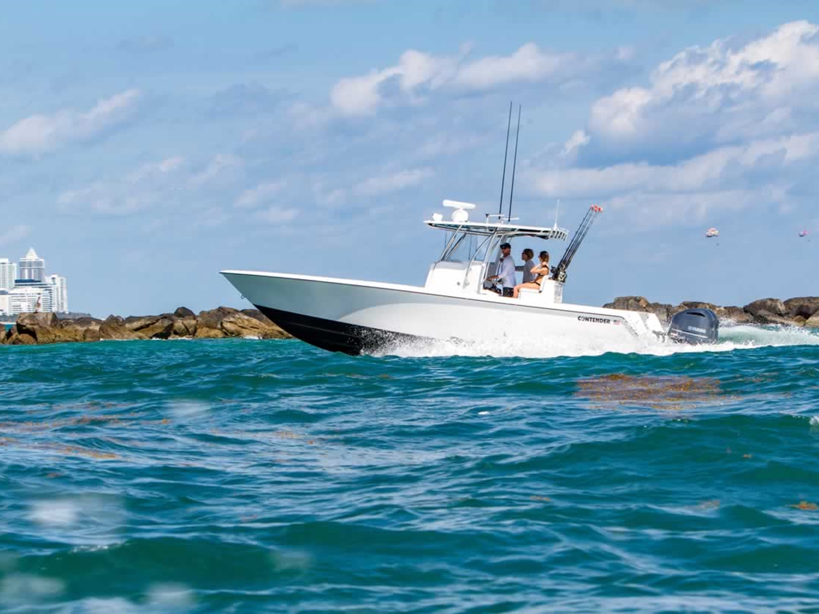 The 32ST is a fishing machine. Built for kitefishing in Miami, the 32ST embodies “Performance Through Innovation”. Years of improvements and custom boat building has created a 32 that is unsurpassed for performance and “fish-ability”. The attention to detail allows you to custom build a boat that fits your needs, whether it’s a blustery day offshore, or a lake calm day at the sandbar.