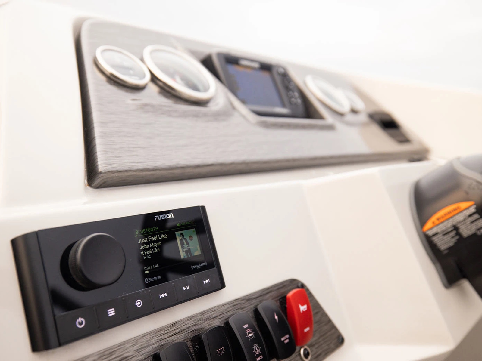 With deluxe features and upgrades, the Classic DLX has what you need for all-day adventures or simply enjoying the moment. Enjoy the soft, insulated cooler located in the bow cooler drawer that can be loaded on and off the boat to pack your favorite snacks and drinks. Keep the party going and never run out of battery with a wireless charging station at the helm. The wrap-around design along with helm trims on our Classic DLX will have you cruising in style. Cruise, sit back and crank the music - we’ll handle the rest.