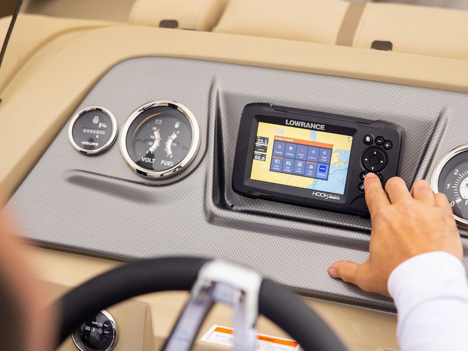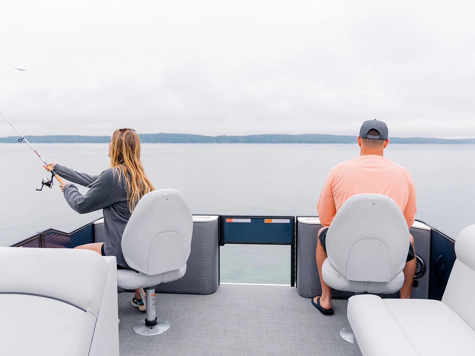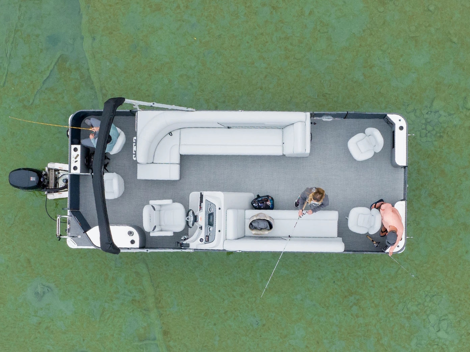 Comfort and performance are at the forefront of features onboard the best-value pontoon in our lineup. Choose the Fish Package to hook huge bass and enjoy the best marine technology at the helm for the captain’s convenience. USB phone chargers are throughout so your whole crew can stay connected and keep the music going. Choose from a multitude of floor plans that offer optimal space with L-shaped sun pads, dual captain’s chairs, and swing back loungers. Fish, swim, eat, lounge, and enjoy every season on the Classic LX.