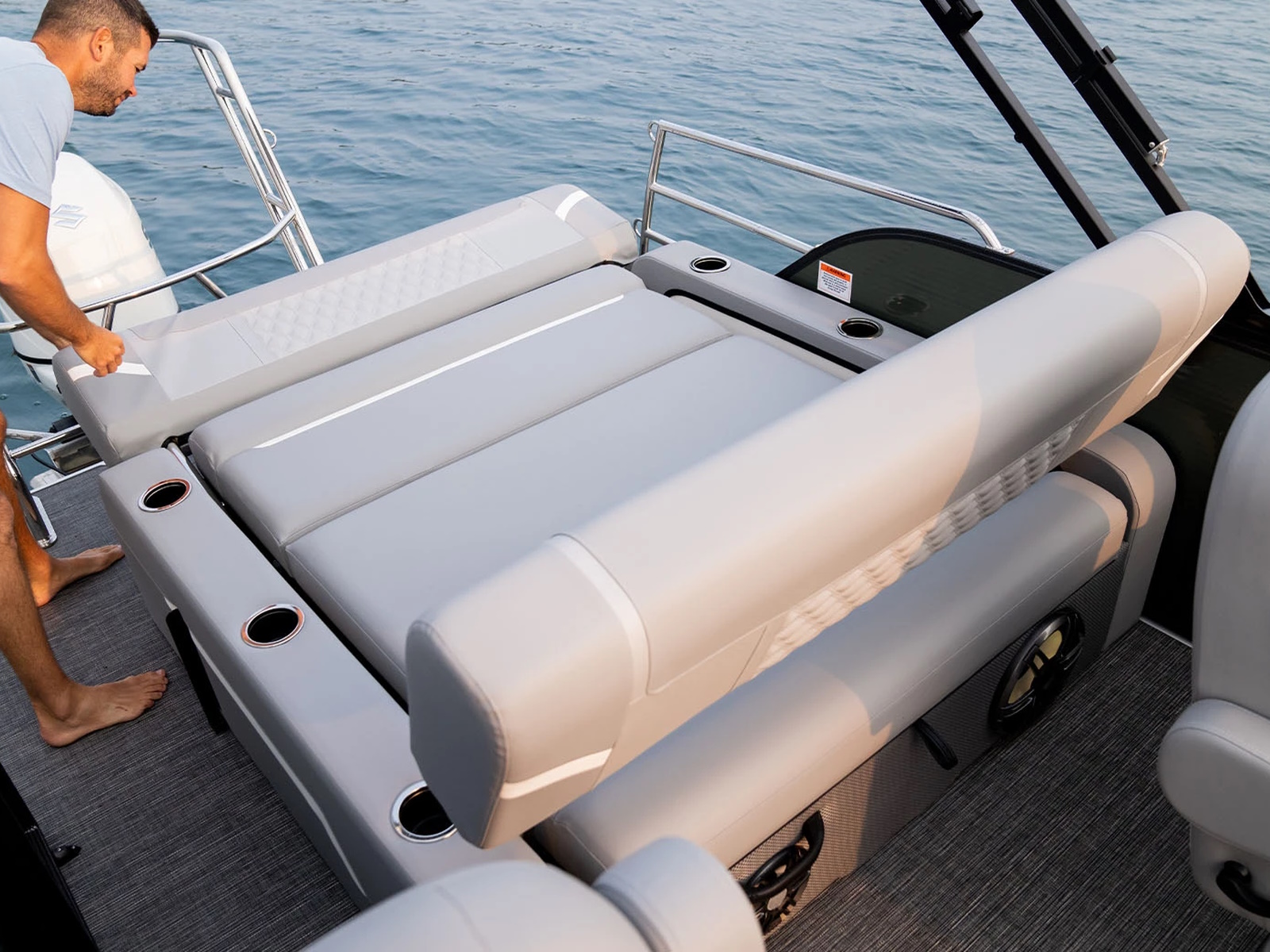 Designed with an abundance of amenities, the Classic Platinum delivers limitless possibilities to customize your ideal boat. Featuring a premium tow bar, higher horsepower options, and a larger fuel tank that can keep you out on the water longer, each boat delivers both performance and comfort. SoftTouch upholstery will keep your crew happy while quality tube, steering and power assist options help make the on-water experience even more enjoyable. Keeping the captain in mind, an elevated helm ensures docking and navigating your Crest with ease. This is your all-in-one solution for creating the best stories for every season.
