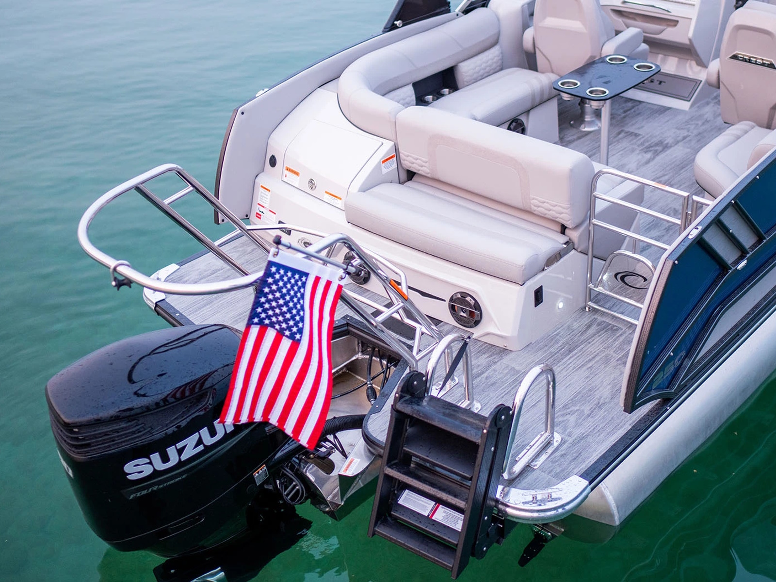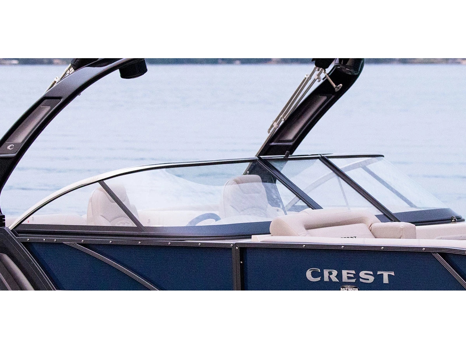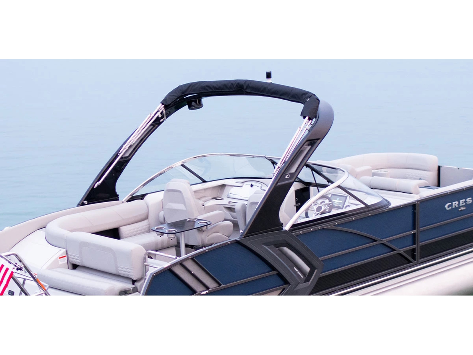 Enjoy ultimate luxury and performance on a Crest Continental. Customizable from the inside out, we deliver only the best materials and technology for you to choose from. Bring the whole crew and stay out all day on the water with standard bow coolers, options for entertainment tables, more dry storage, a powder-coated deck trim, and an optional cladded arch with gas assist. The full-size walkthrough windshield sets this tritoon apart from the others you’ll see on the water. Bring life on the lake to a whole new level with the superior features found on the Crest Continental.