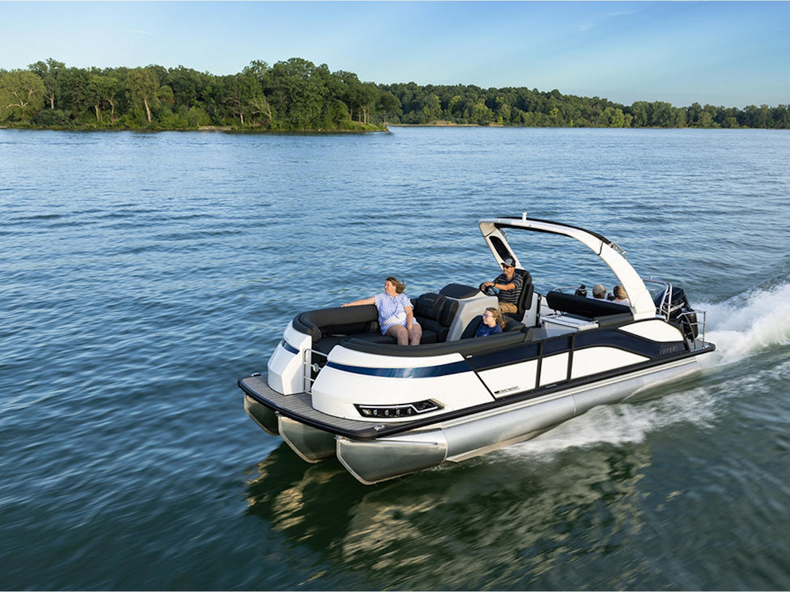 With a totally redesigned look, the Grand Mariner stuns everyone on the lake with it's sweeping lines and sloped silhouette. Our soft-touch vinyl and luxurious furniture keep your family comfortable, while the Mercury engine puts plenty of power for watersports at your fingertips.