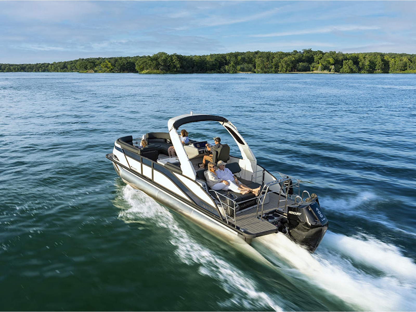 With a totally redesigned look, the Grand Mariner stuns everyone on the lake with it's sweeping lines and sloped silhouette. Our soft-touch vinyl and luxurious furniture keep your family comfortable, while the Mercury engine puts plenty of power for watersports at your fingertips.