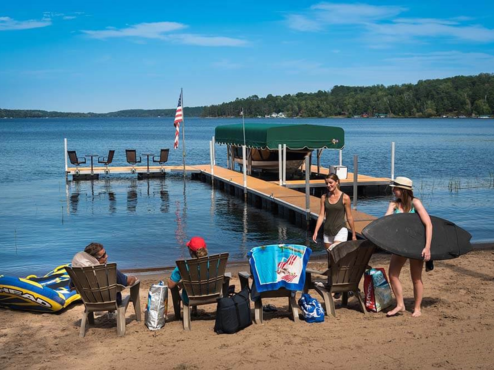 Floating docks do not use a rigid connection to the lake bottom with legs or posts so they will naturally have some give and/or sway as they are walked on. With a straight-out floating dock, stability is improved by maximizing the dock width. It is recommended that 6′ or 8′ docks widths are used for straight dock systems. Sundecks or slips will improve the stability of a floating dock system if they are connected with the hinge connector perpendicular to the narrow side of the main walkway.