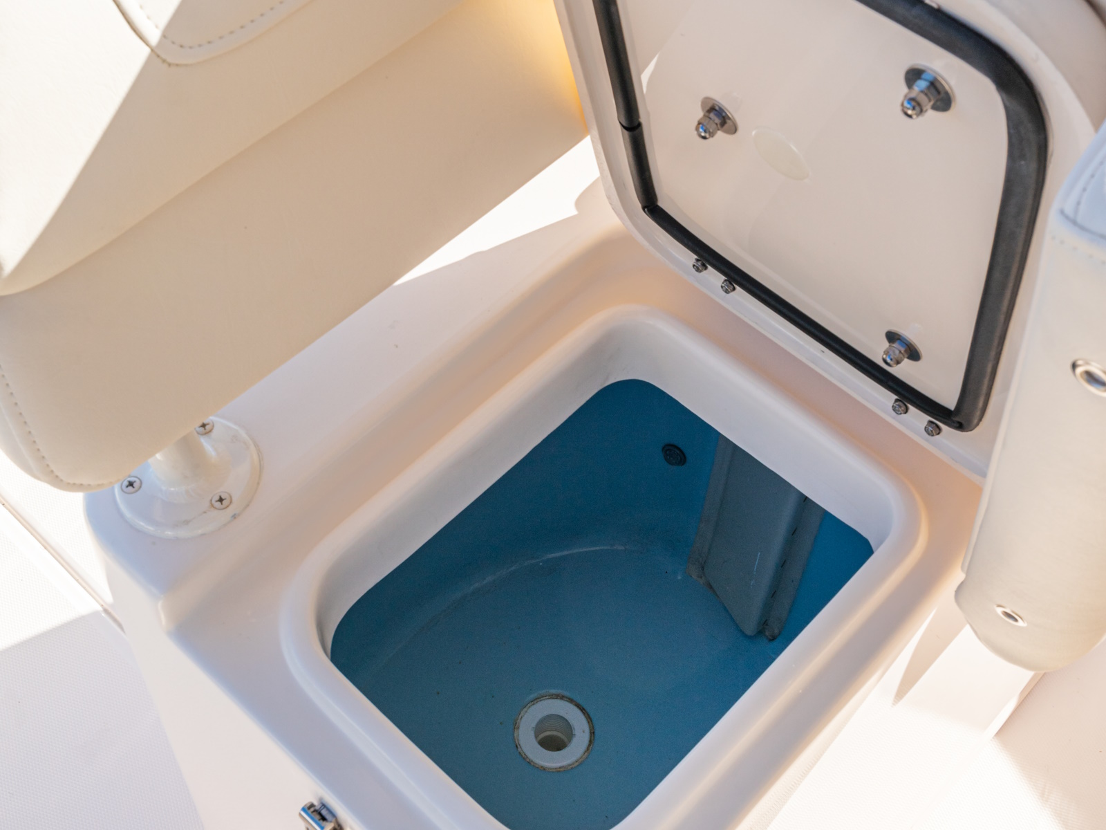 - Fish box - 277-qt. (262.1 l) forward insulated fish box w/overboard drain