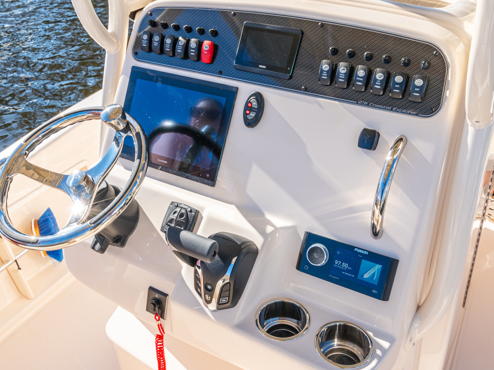 - Stereo system w/waterproof touch screen display, AM/FM tuner & Wi-Fi & Bluetooth® connectivity; speakers w/LED lights - bow (2), cockpit (2)