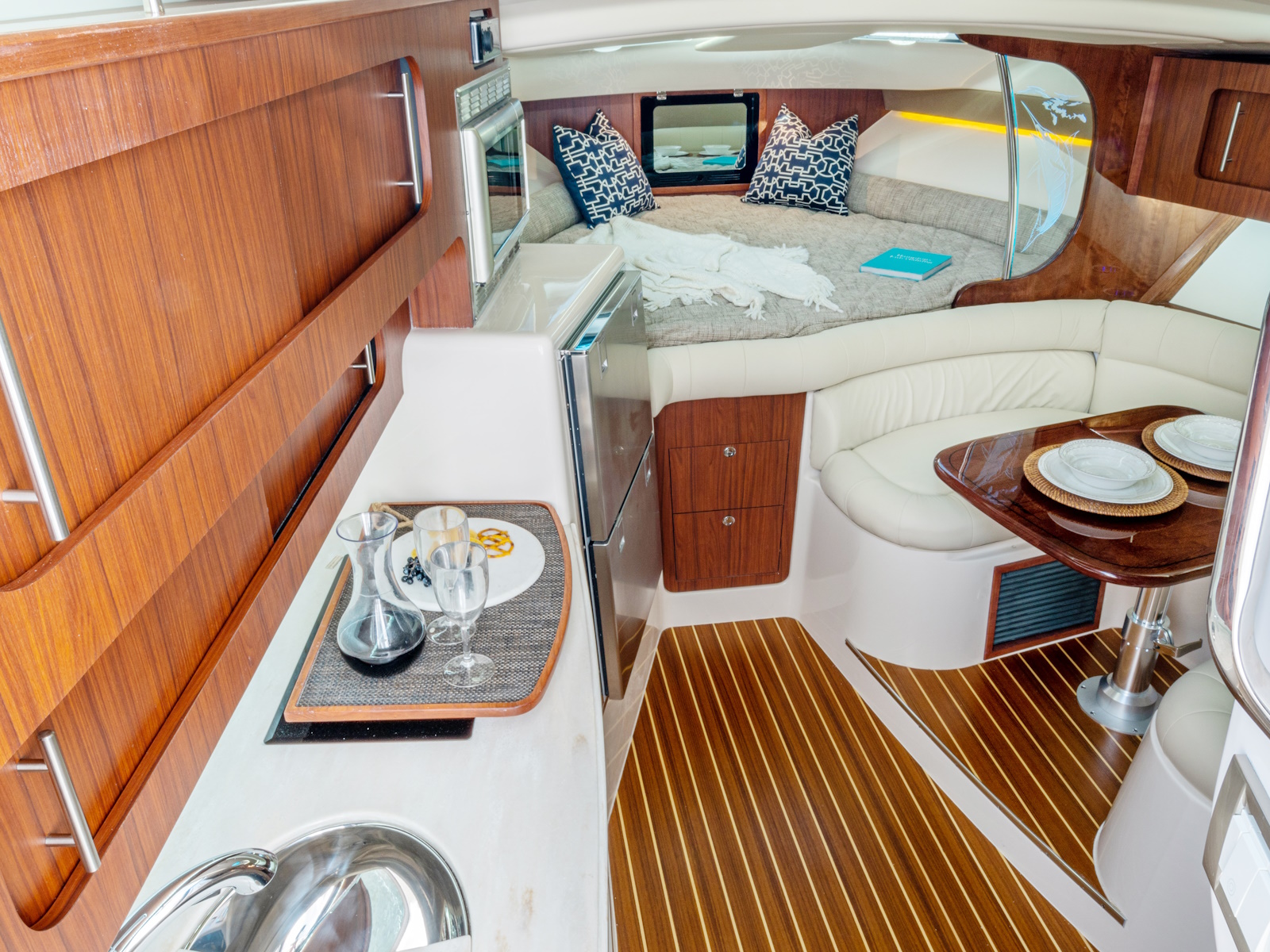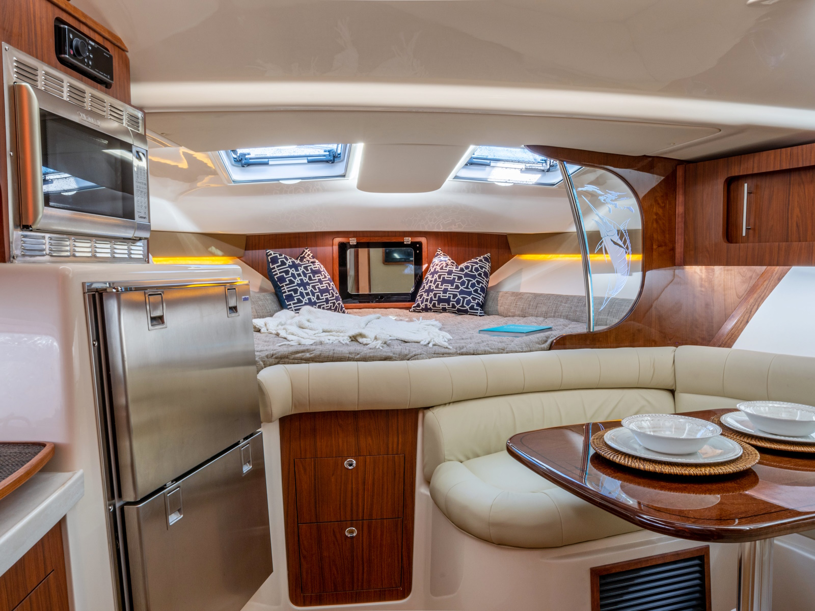 - Seating - starboard lounge seat w/convertible configurations & hideaway folding table