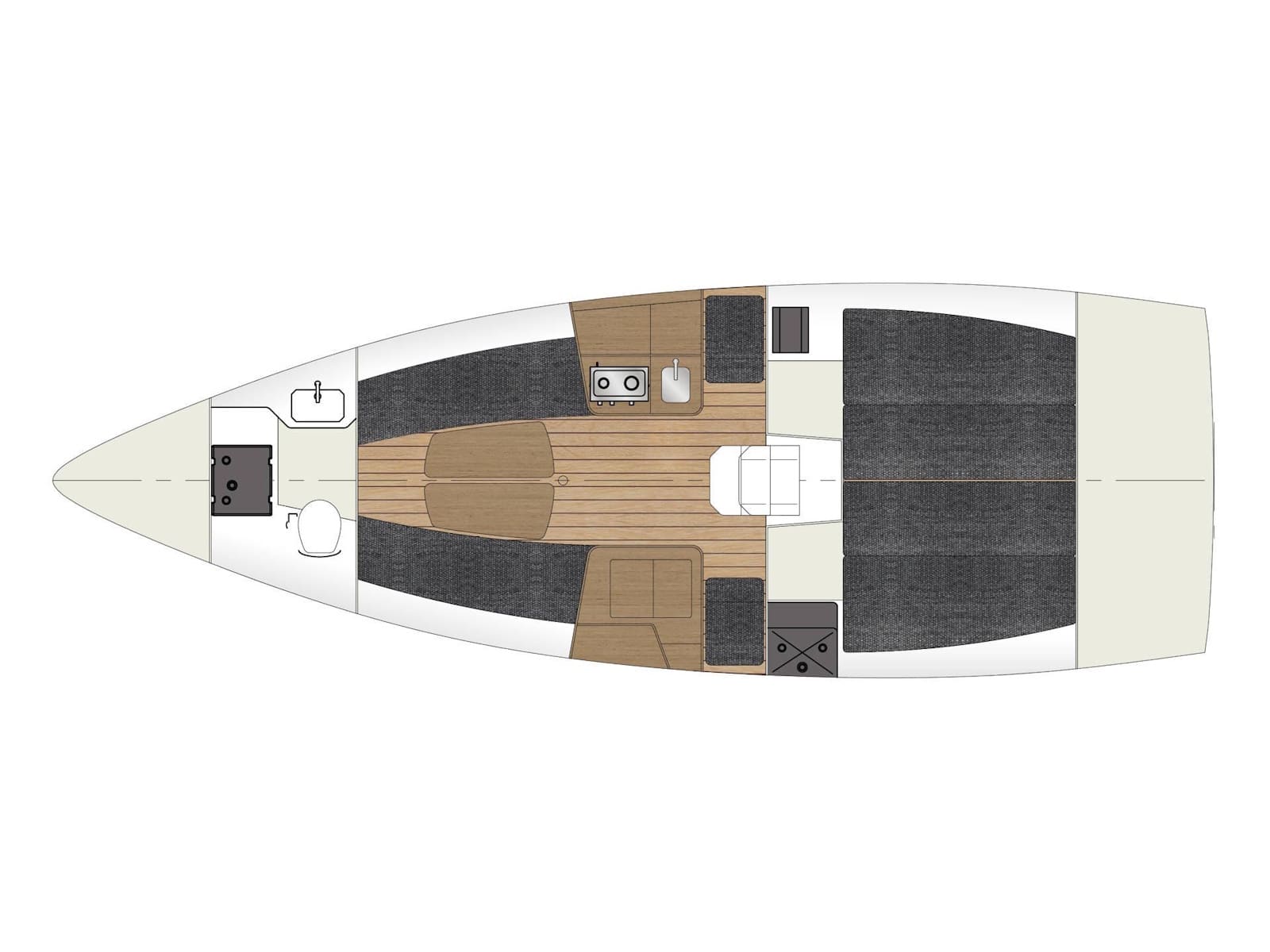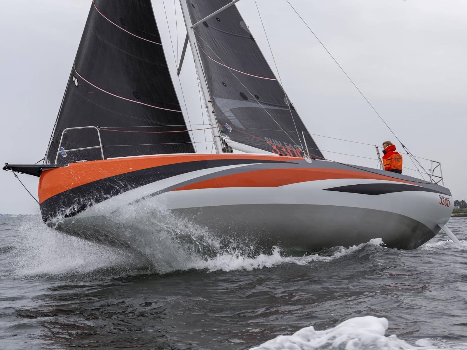 Aboard this race boat, ergonomic design serves efficiency, with a spacious cockpit to facil-itate movement about the deck, and sail controls led to the helm for single-handed crossings. Five percent faster than the 3200 version, the Sun Fast 3300 is still just as stable and bal-anced on technical courses. Its hull has been specially designed with the objective of enhancing performance downwind. With the Sun Fast 3300, exhilarating speeds and surfing down the ocean waves are yours!