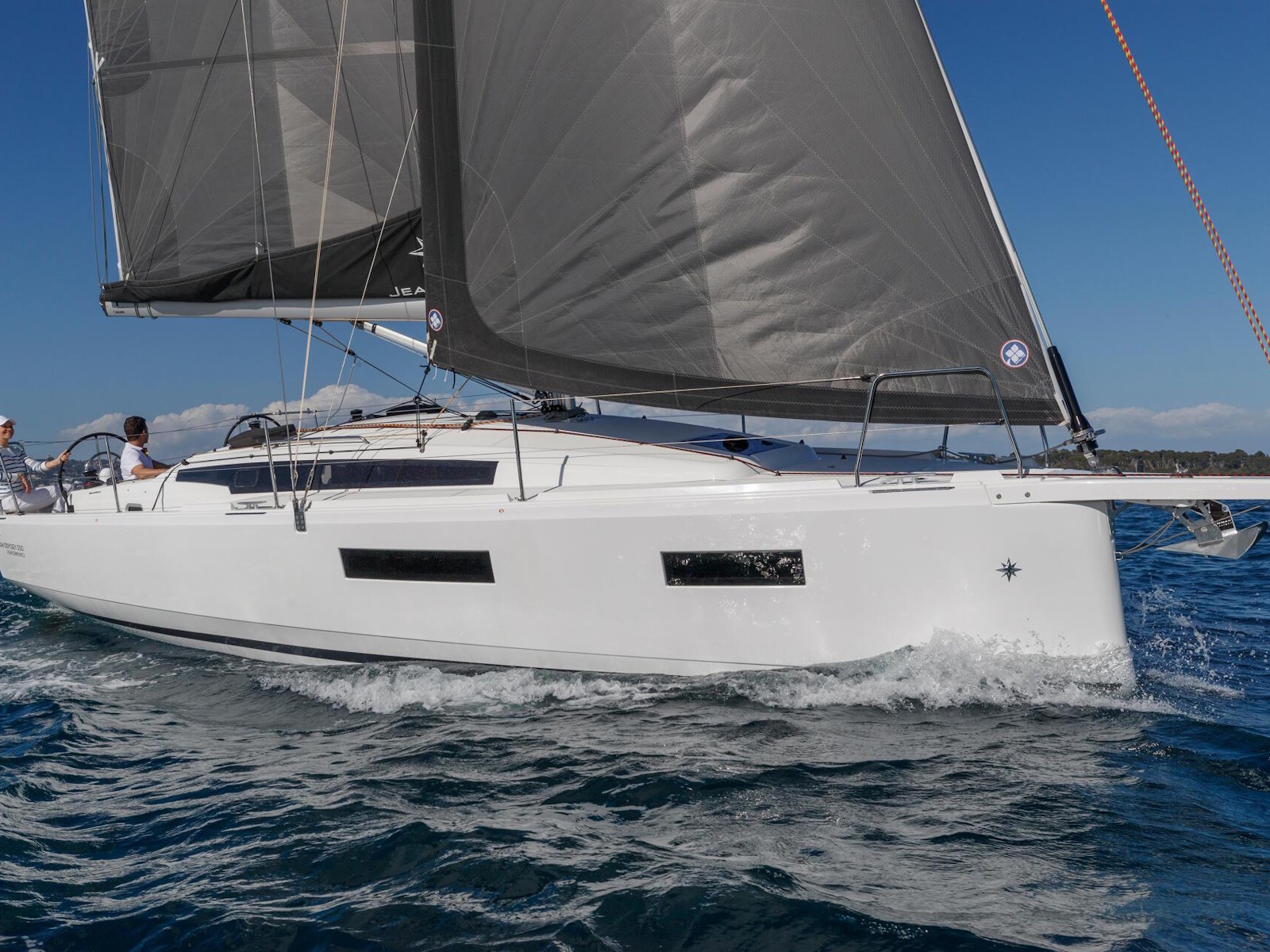 Boasting an all-new hull, the Sun Odyssey 350 features a distinctive, contemporary silhouette. Her bow stands clear of the waterline, facilitating docking manoeuvres and handling in light wind. High-performance and responsive at the helm, she is distinguished from her predecessor by innovation to further improve quality of life in the cockpit. Walkaround sidedecks facilitate handling and ease of movement. With this clever layout, there are no obstacles to interrupt the flow of movement on board. The helmsperson benefits from enhanced comfort and better forward visibility due to off-centred aft helms with twin steering wheels.