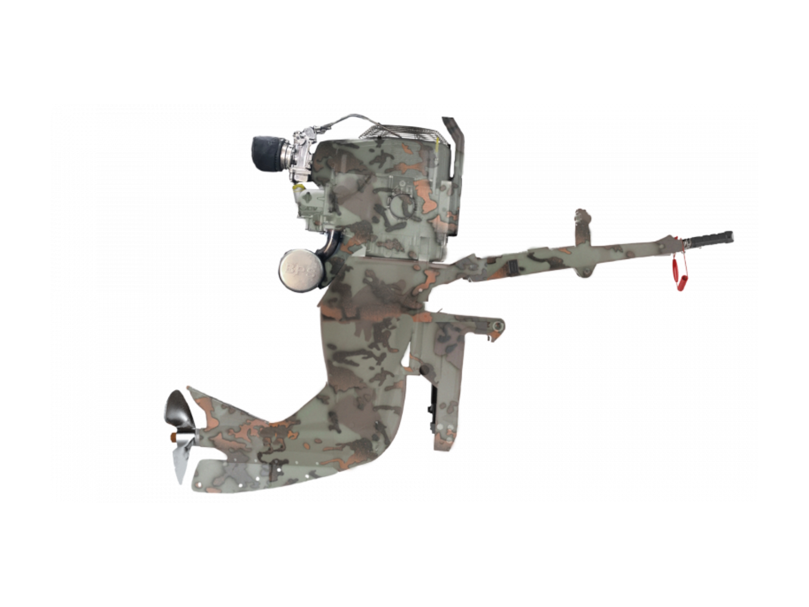 The 4400 Mikuni Sport V is a balanced, vertical air cooled motor that handles like an outboard with the performance of a surface drive mud motor. The articulating handle with forward, neutral and reverse also has a convenient handle end trim switch and Oury motor cross comfortable grip. The Mercury build trim has a second trim switch on the side of the handle for easy access from the ground when setting up the motor for trailering. If you are looking for the best vertical mud motor in the industry with simple F-N-R shifting, search no further.
