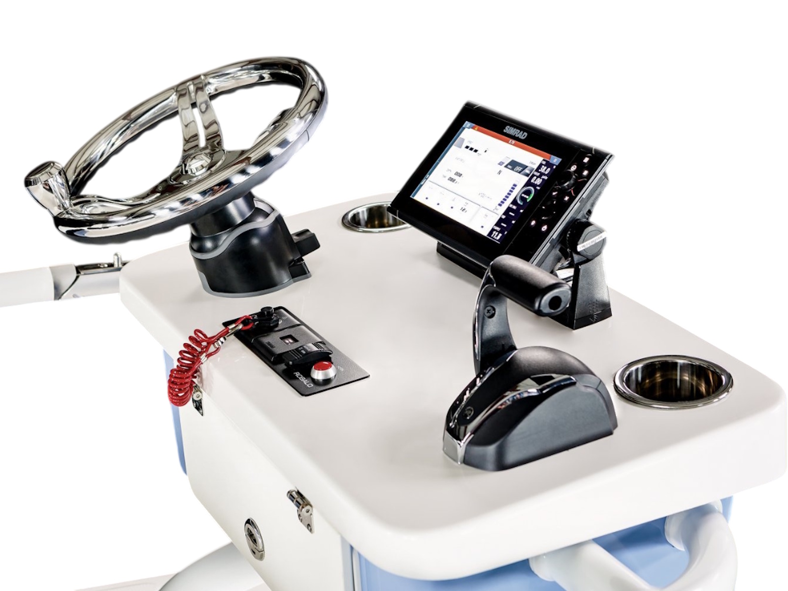 • Stainless Steel Steering Wheel with Soft Grip Control Knob