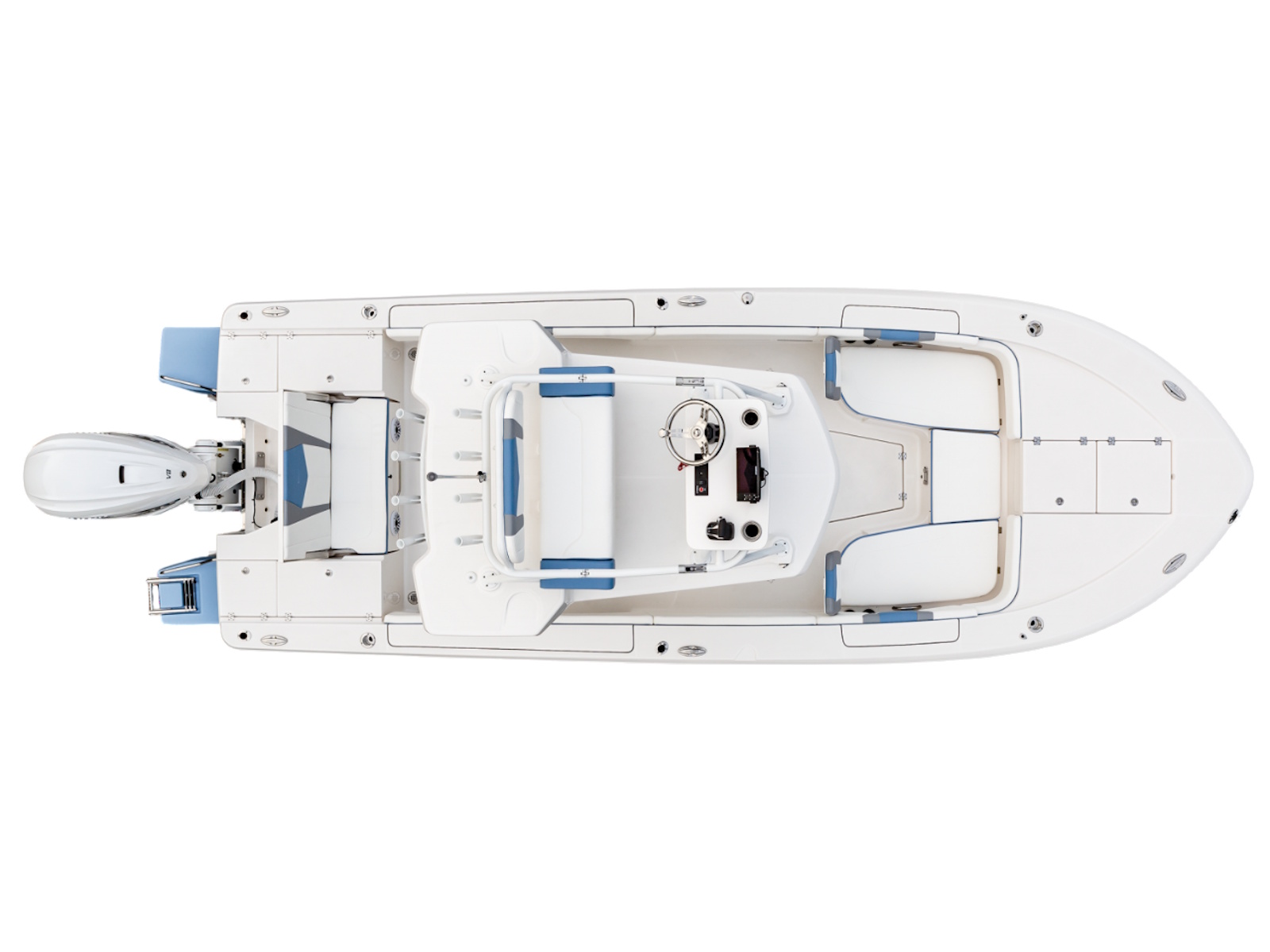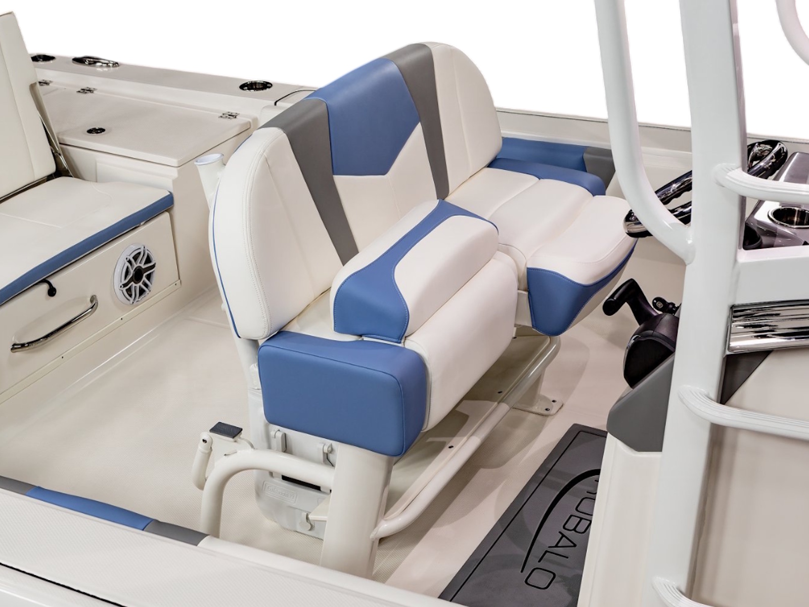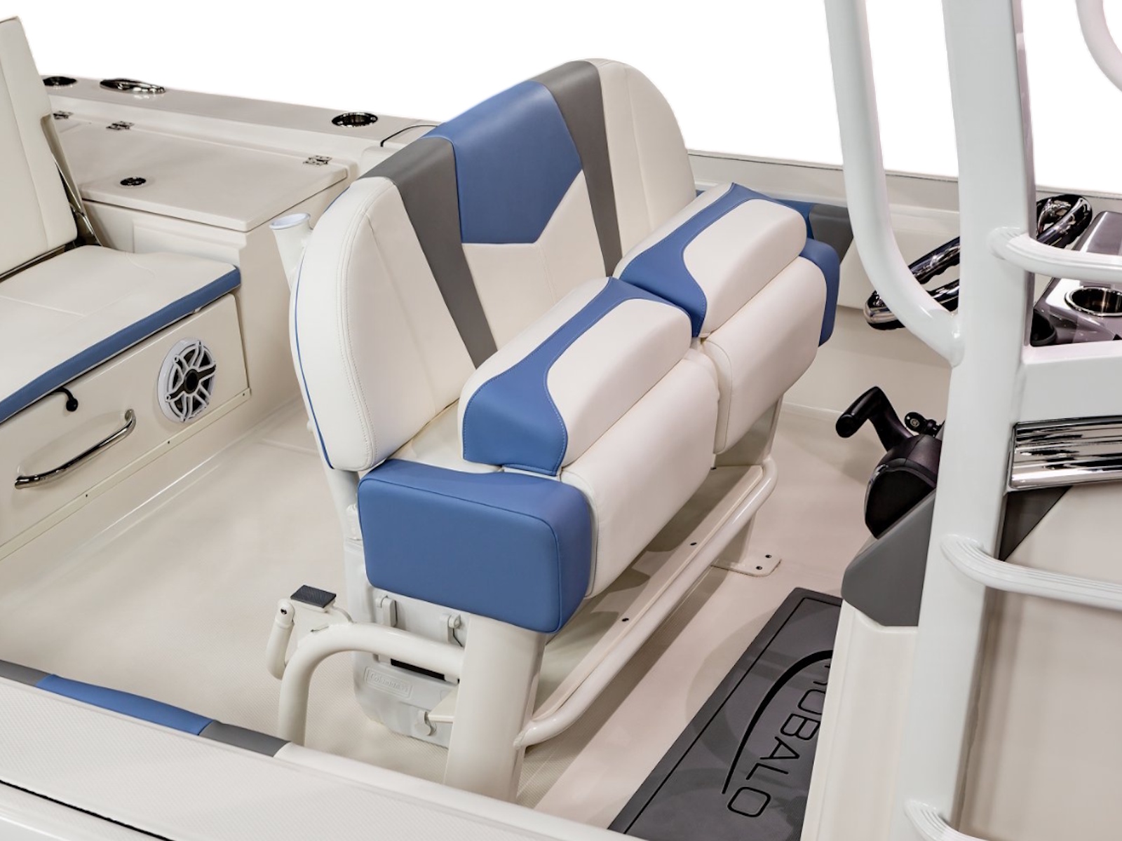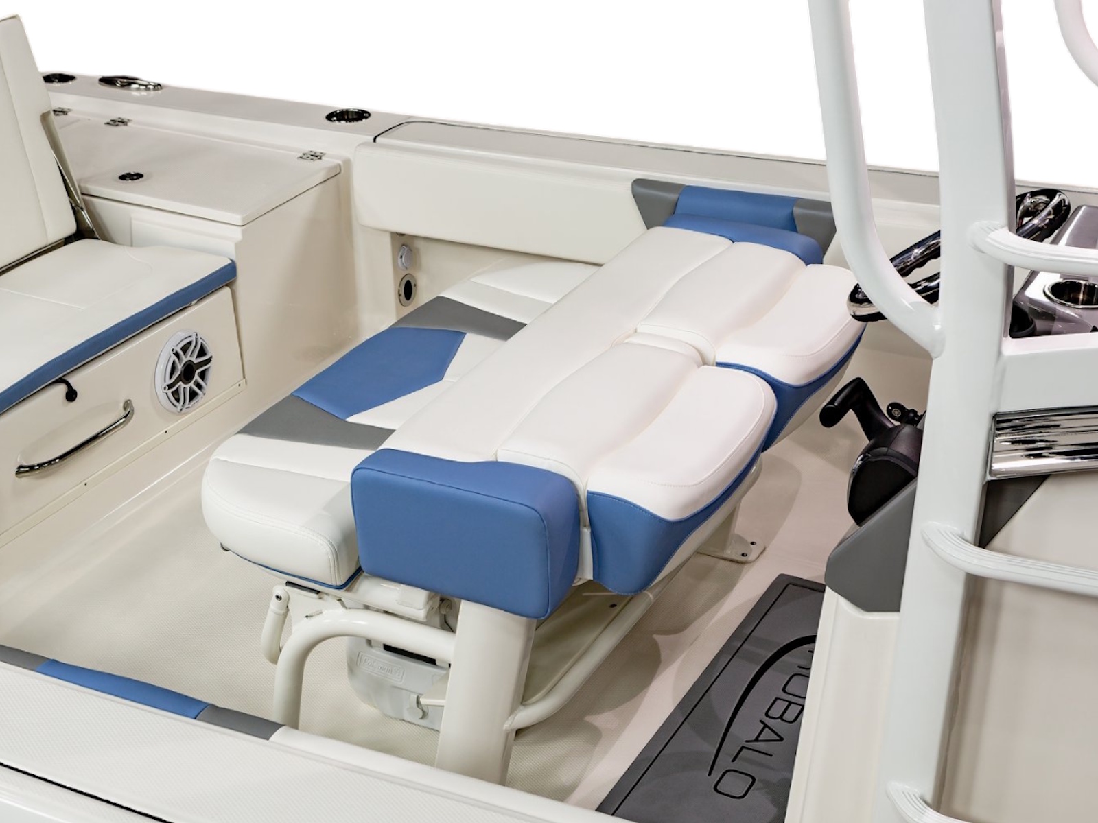 • Bow Center Insulated Livewell (20 gallons) with Dedicated Livewell Pump, LED lighting, Blue Gelcoat Finish with Adjustable Flow Valve