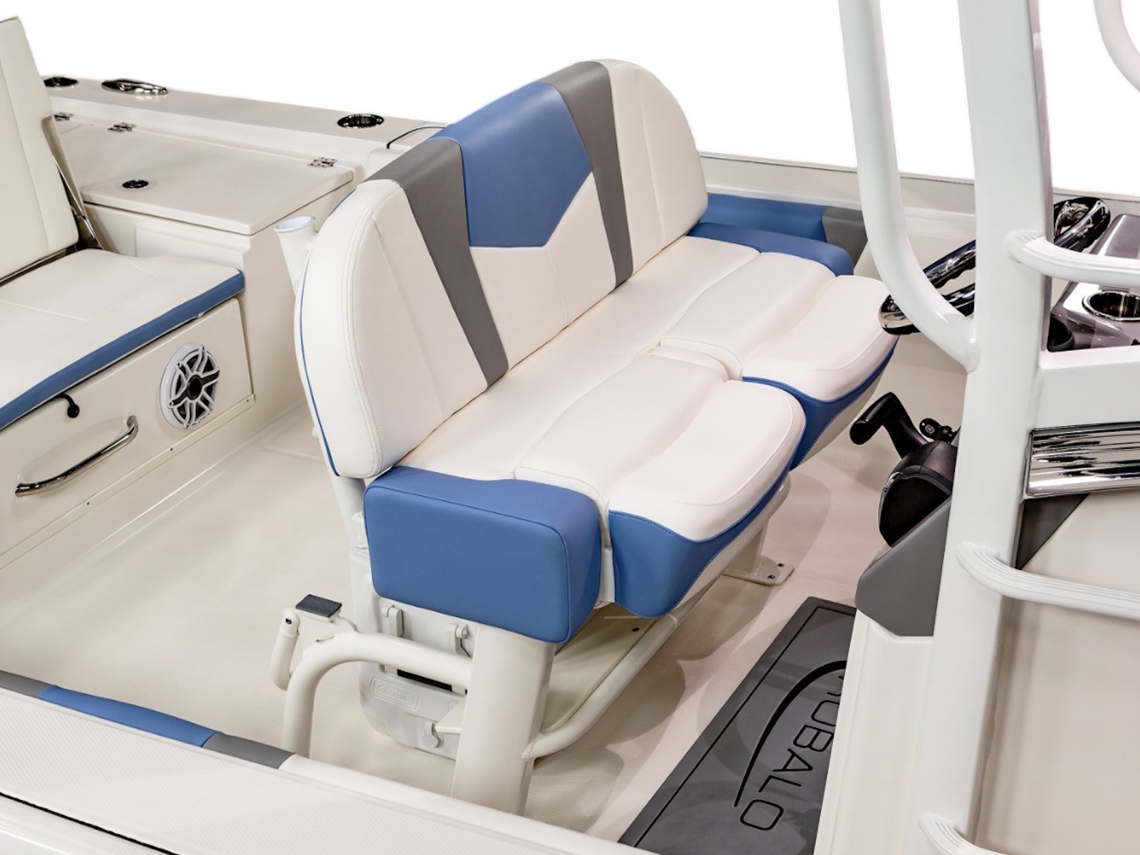 • Aft Double-Wide Seat with Folding Backrests and Custom Stainless Steel Hardware (Converts to Casting Platform)