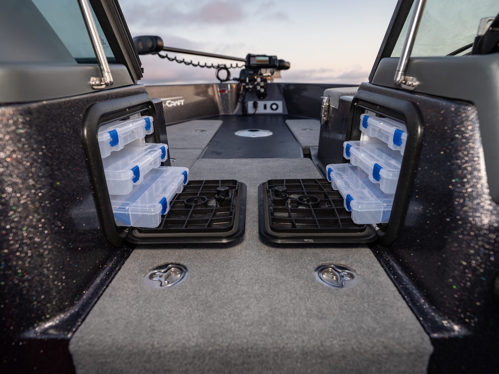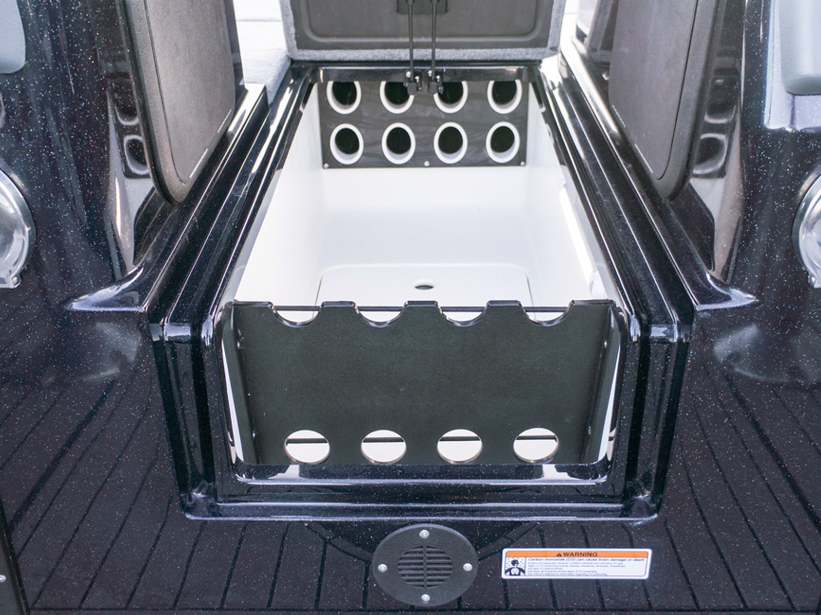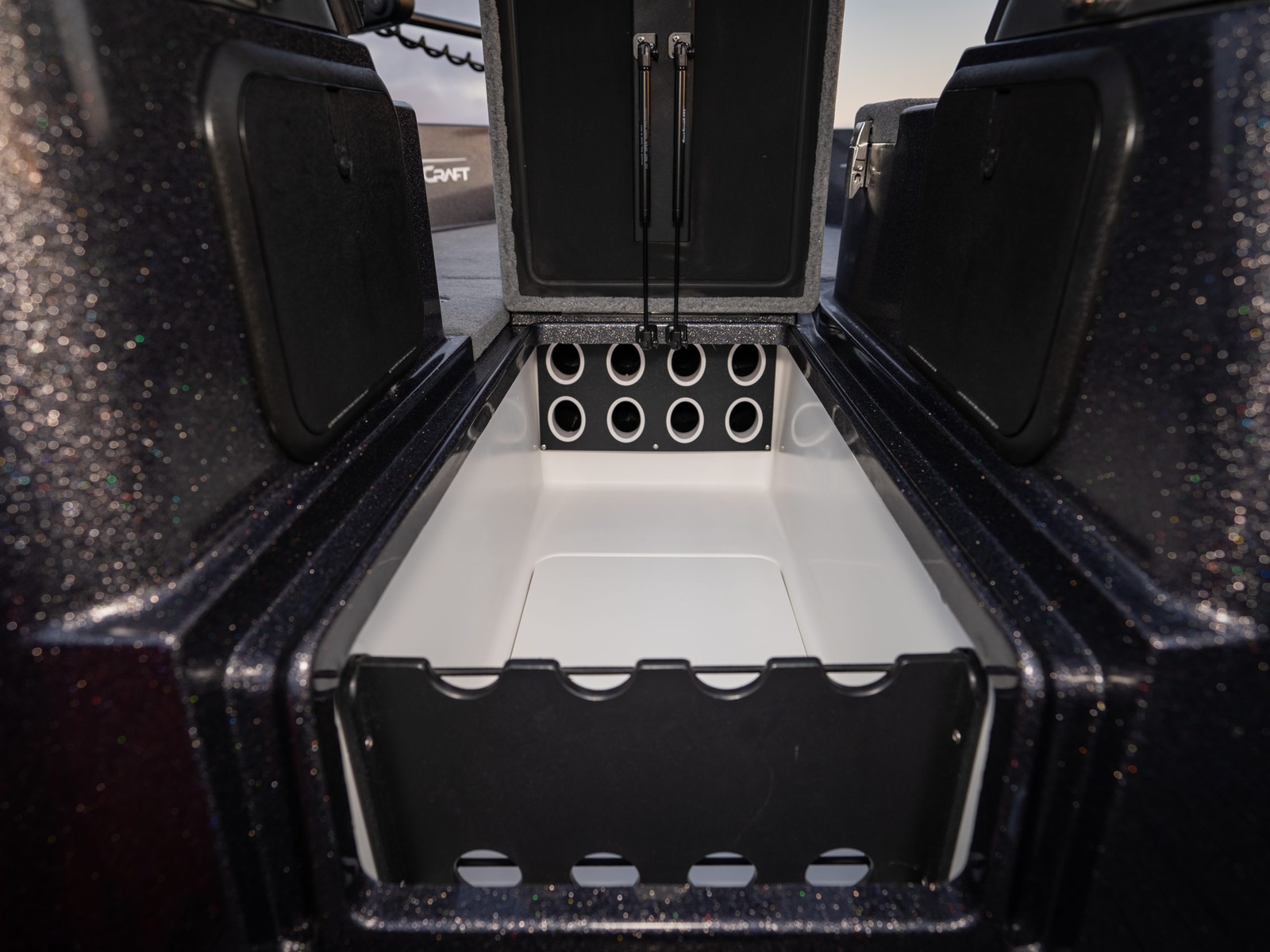 - Dual tier lighted center rod storage (8′ bottom / 8.5′ top)