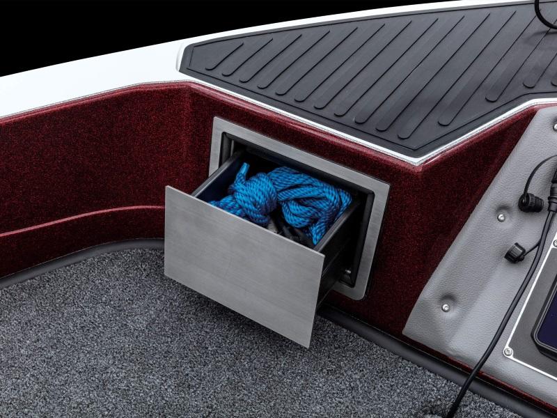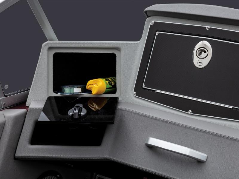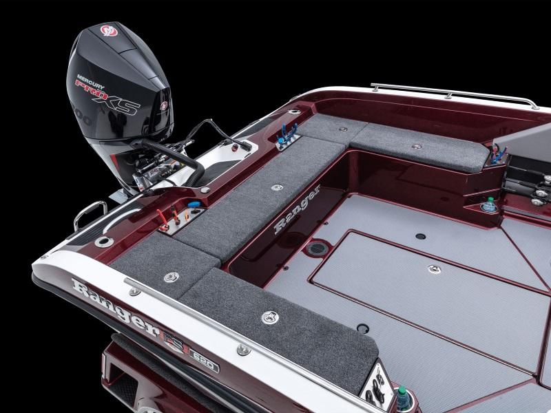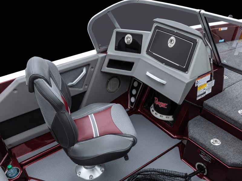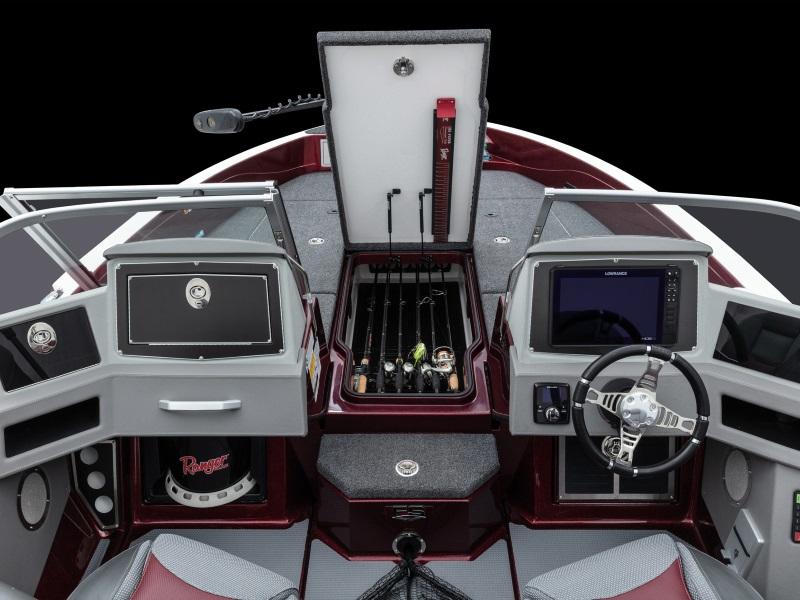 Engineered to be the pinnacle of big water aptitude, the new Ranger® 620FS PRO carries brute strength with elegant comfort and a brilliant multifunction display in the Ranger RIDE system. From this 9" touchscreen, you can control every critical aspect of your boat from livewells, stereo, lighting, trim tabs, security and more as well as monitor your outboard in realtime. This control is matched by the new hull that provides complete command over the new 300HP rating. New consoles provide more storage and convenience with dual gloveboxes on the passenger side, while the driver's can flush-mount screen up to 16" front and center. The phone management station at the helm provides wireless mobile charging capability as well as USB and 12V outlets. A cubby offers more storage or a spot for an optional VHF radio and a new steering wheel gives the precision steering an enhanced feel. Plus, enlarged cockpit storage holds scores of vertically oriented Plano boxes for more space than ever. With so much brawn and brains, the new 620FS PRO is Where Street Fighter and Scientist Meet.